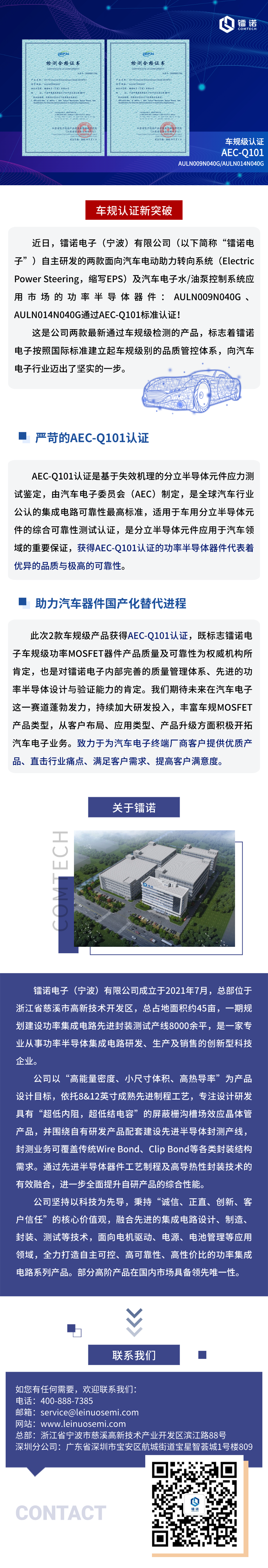 喜报!镭诺电子两款车规级产品获得AEC-Q101认证!